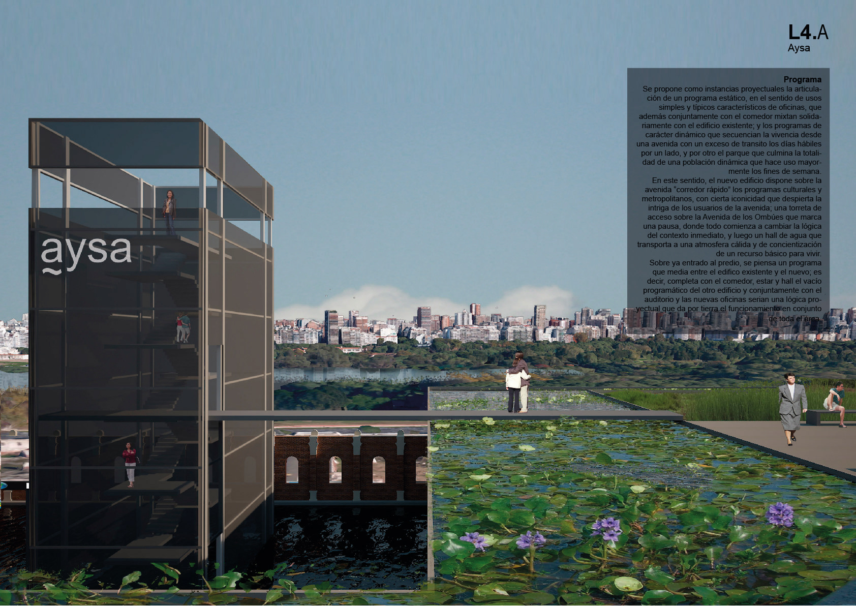 Participación en Concurso Nacional AySA. Equipo de trabajo: Pablo Engelman (EN arquitectura), Agustín Moscato (AToT), Lucia Hollman (AToT), Canela Santome Romero, Agustina Rodríguez Pascual y Leonel Sorrentino.
